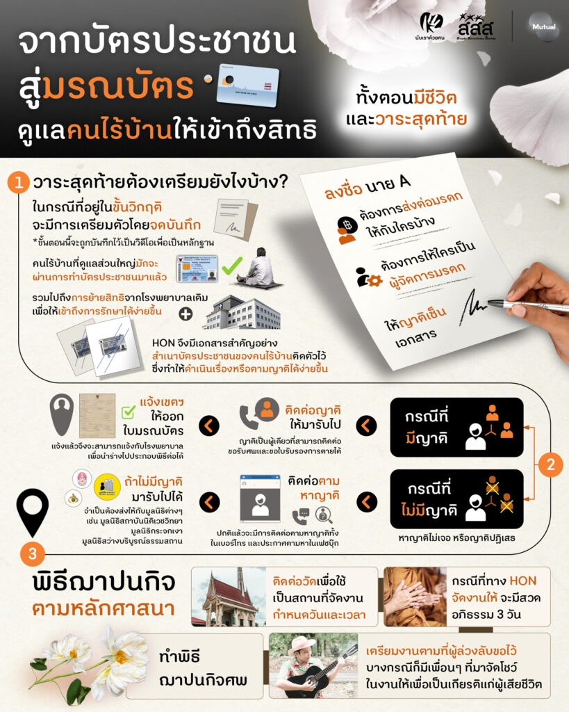 จากบัตรประชาชน สู่มรณบัตร : ดูแลคนไร้บ้านให้เข้าถึงสิทธิทั้งตอนมีชีวิตและวาระสุดท้าย